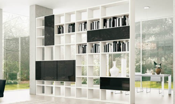 Storage idea #4: Use movable wall shelves to act as room dividers